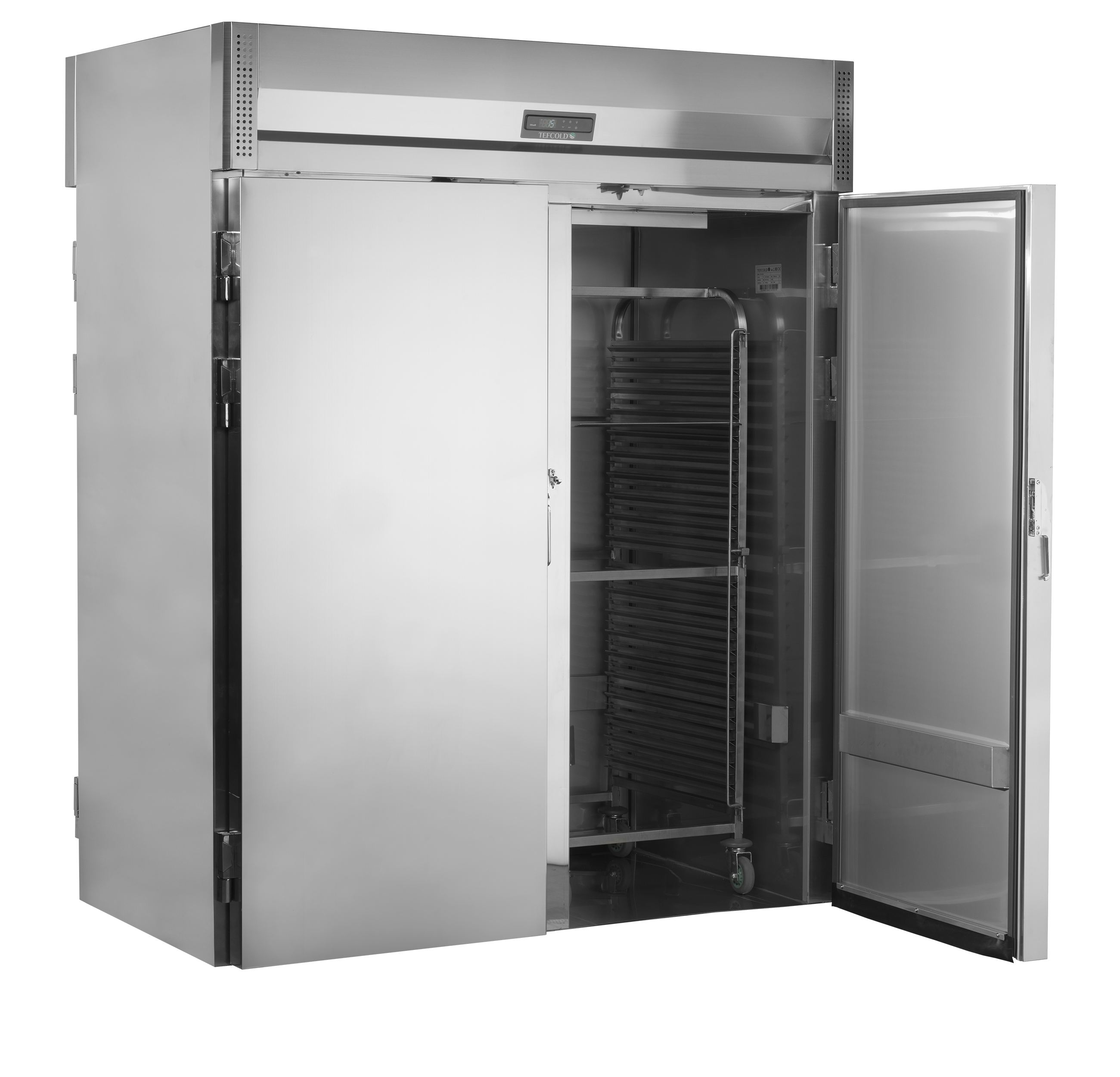 The RTC range of Roll-Through Coolers contributes to efficiency in professional kitchens. Made from durable SS304 stainless steel, these ventilated units keep dishes fresh, and with doors on both sides there is easy access. Each compartment fits 1 x GN2/1 or 1 x 600x400mm or 2 x GN1/1 20-tray trolleys with ease (sold separately). Ideal for bakeries, event venues, and professional kitchens.