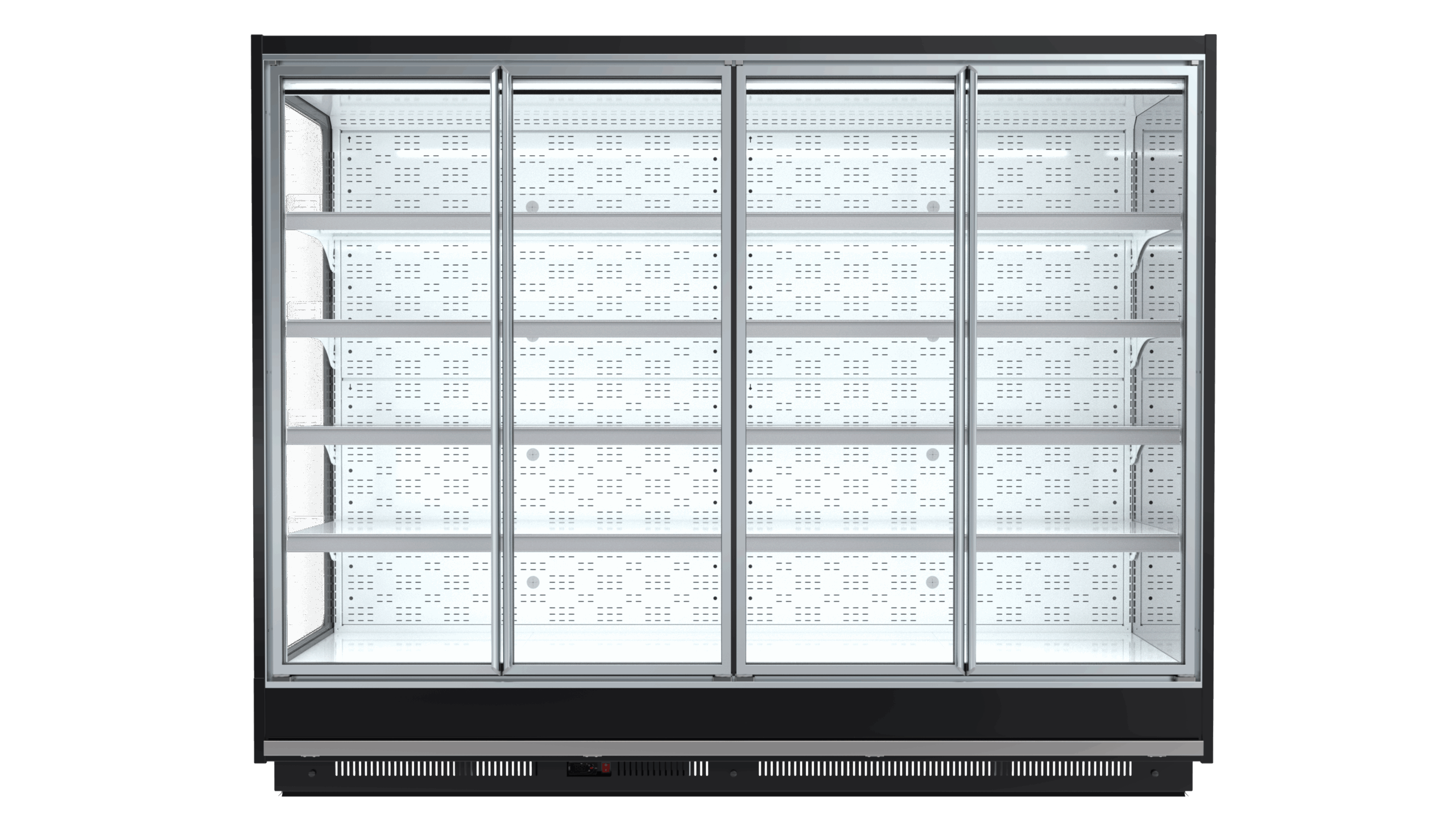 Răcitoarele de perete TAIGA sunt dotate standard cu iluminare LED internă, ventilatoare interne (de înaltă eficiență) pentru o circulație optimă a aerului, dezghețare electronică, comenzi digitale cu afișaj LED luminos și rafturi reglabile și rabatabile.