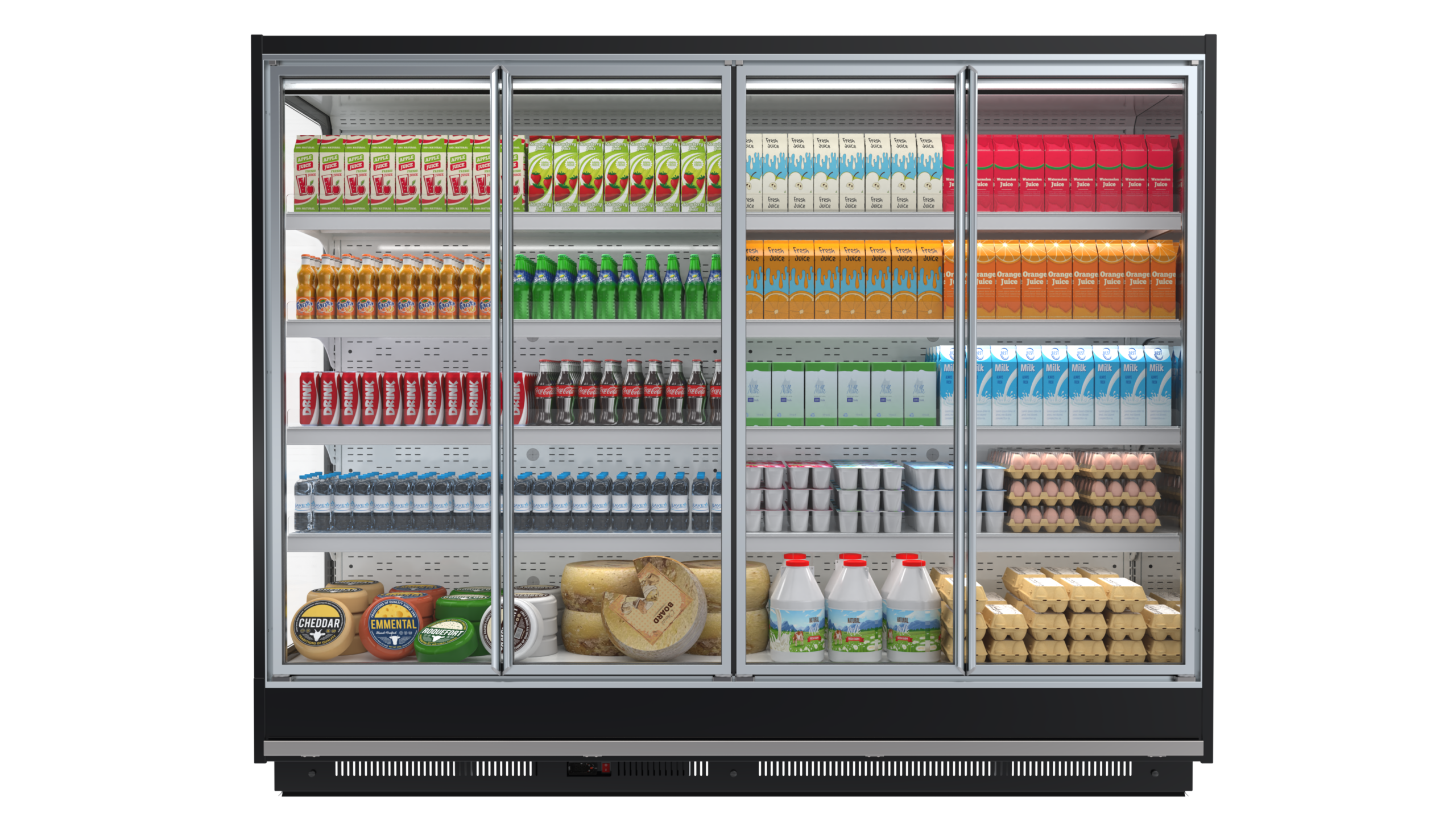Unitățile de răcire de perete din această serie pot fi, de asemenea, conectate perfect, astfel încât să se poată asambla un perete complet de unități de răcire fără întreruperi sau pereți despărțitori.