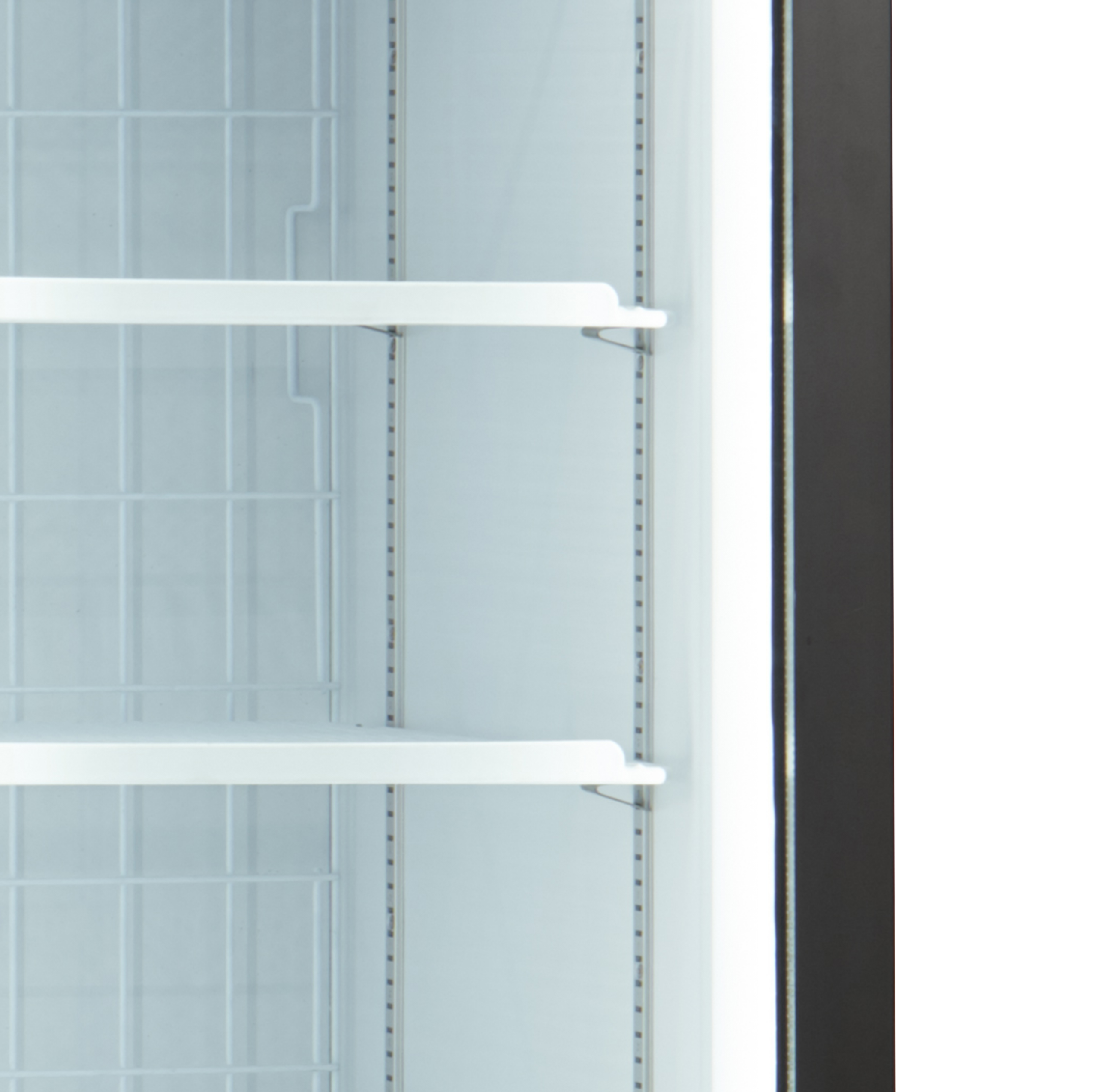 Adjustable shelves|2 separate cooling systems (higher safety)|Improved product presentation|Improved ventilated cooling|LED illuminated canopy|LED light in door frame|Less maintenance