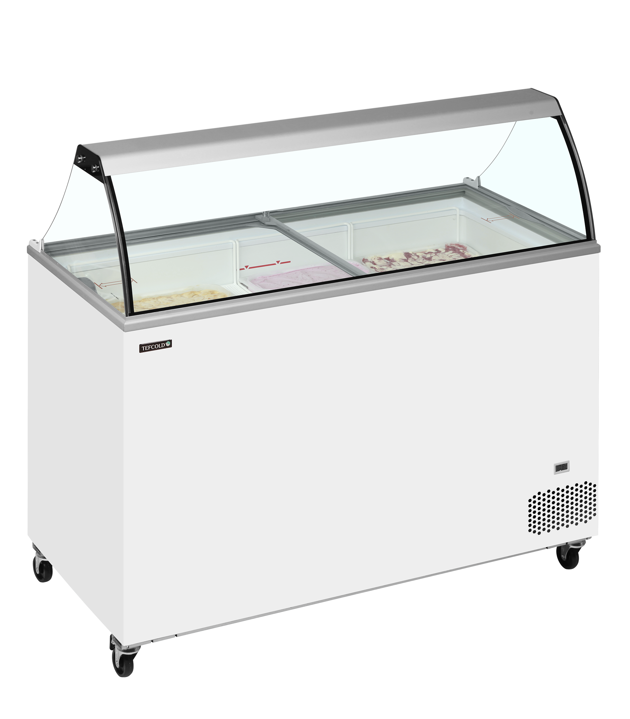 The IC-SO range of scoop ice cream freezers offers great quality at a competitive prize. The model has flat sliding lids that allow easy access to the ice cream for serving and help insulate the unit when not in use. It has a serve over glass top and is ideal for branding to attract more attention to the unit and its cold content. The freezer is optimized for baskets that can hold 5 l plastic tubs in the top and room for storage underneath.