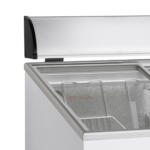 The ST range of display chest freezers is ideal for storing and displaying ice cream and frozen goods in smaller stores. It has a double-glazed hinged glass lid with an aluminum frame for easy access and great product visibility. It has a clean design, static cooling, and is mounted on castors for added mobility.